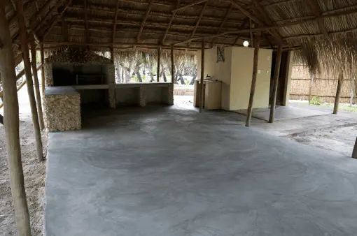 Shared cooking space at the campsite, equipped with amenities like stoves, sinks, and storage. Ideal for campers to prepare their meals and snacks.